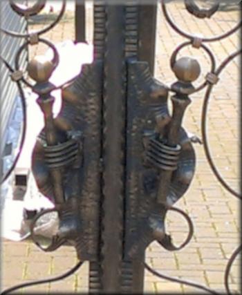 Palme und Schwerter "handgefertigt Firma Poelka MetallArt", komplette Schmiedetoranlage aus Volleisen gefertigt und teilvergoldet......